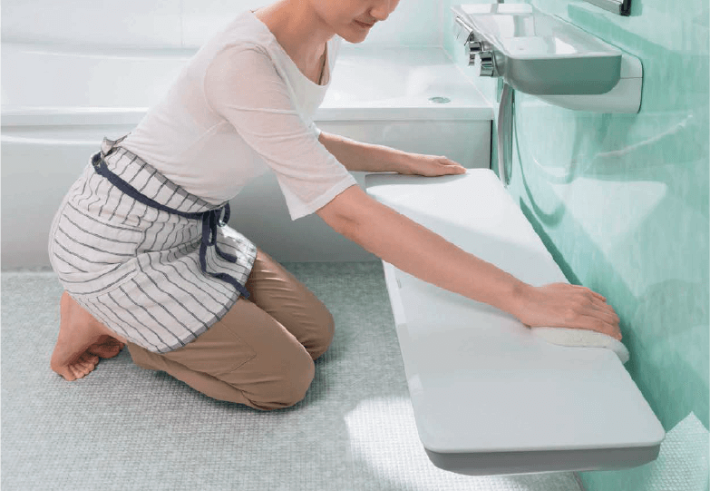 床表面に特殊処理をした親水層の効果で軽くこすれば汚れがスッキリ。