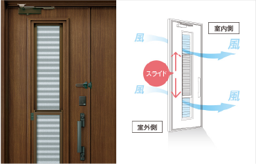 ドアを閉めたまま換気できる「内開き」と「上げ下げ」の2種類の玄関ドアをご用意。